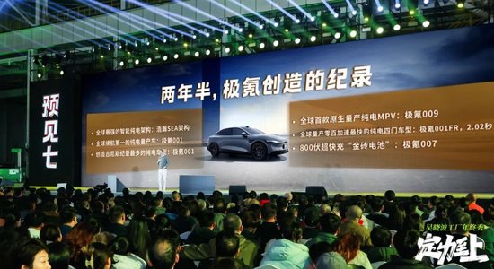 两年半来,我们看到极氪汽车创造了诸多纪录:全球最强的智能纯电架构——SEA浩瀚架构;全球续航第一、创造五项吉尼斯纪录的纯电车型——极氪001;全球首款原生量产纯电豪华MPV——极氪009;全球量产零百加速最快的纯电四门车型——极氪001FR;极氪007搭载800伏超快充电池,开启预订40天订单已超过5万台。